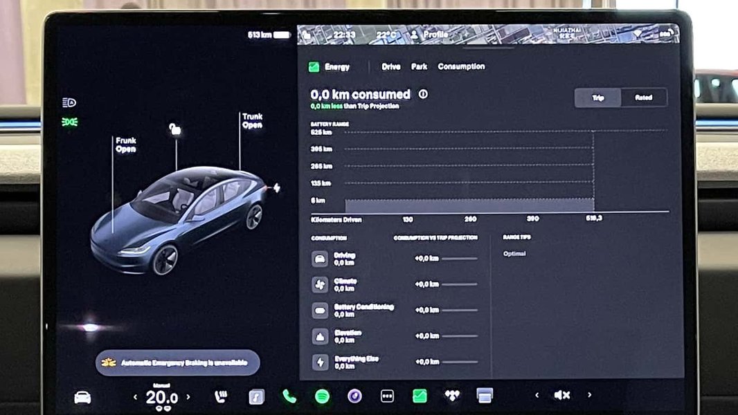 • Estimated Range at 100% Charge: Note changes over time under similar conditions.